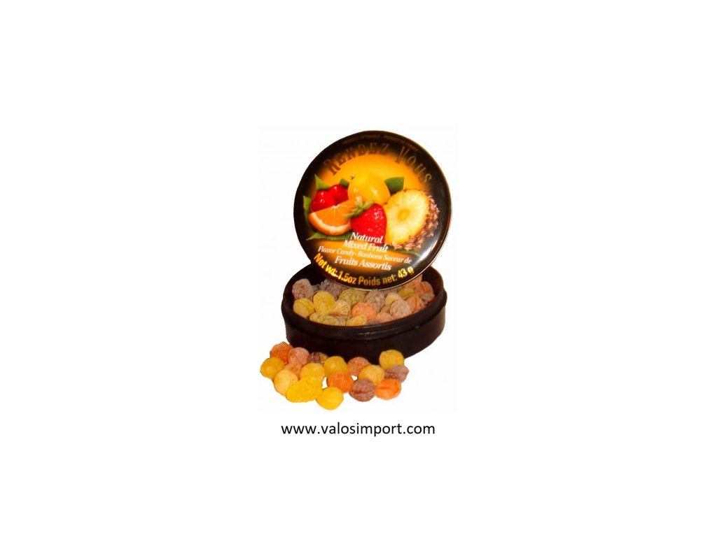 Francouzské ovocné pastilky mnoha tvarů a příchutí v plechové krabičce.
